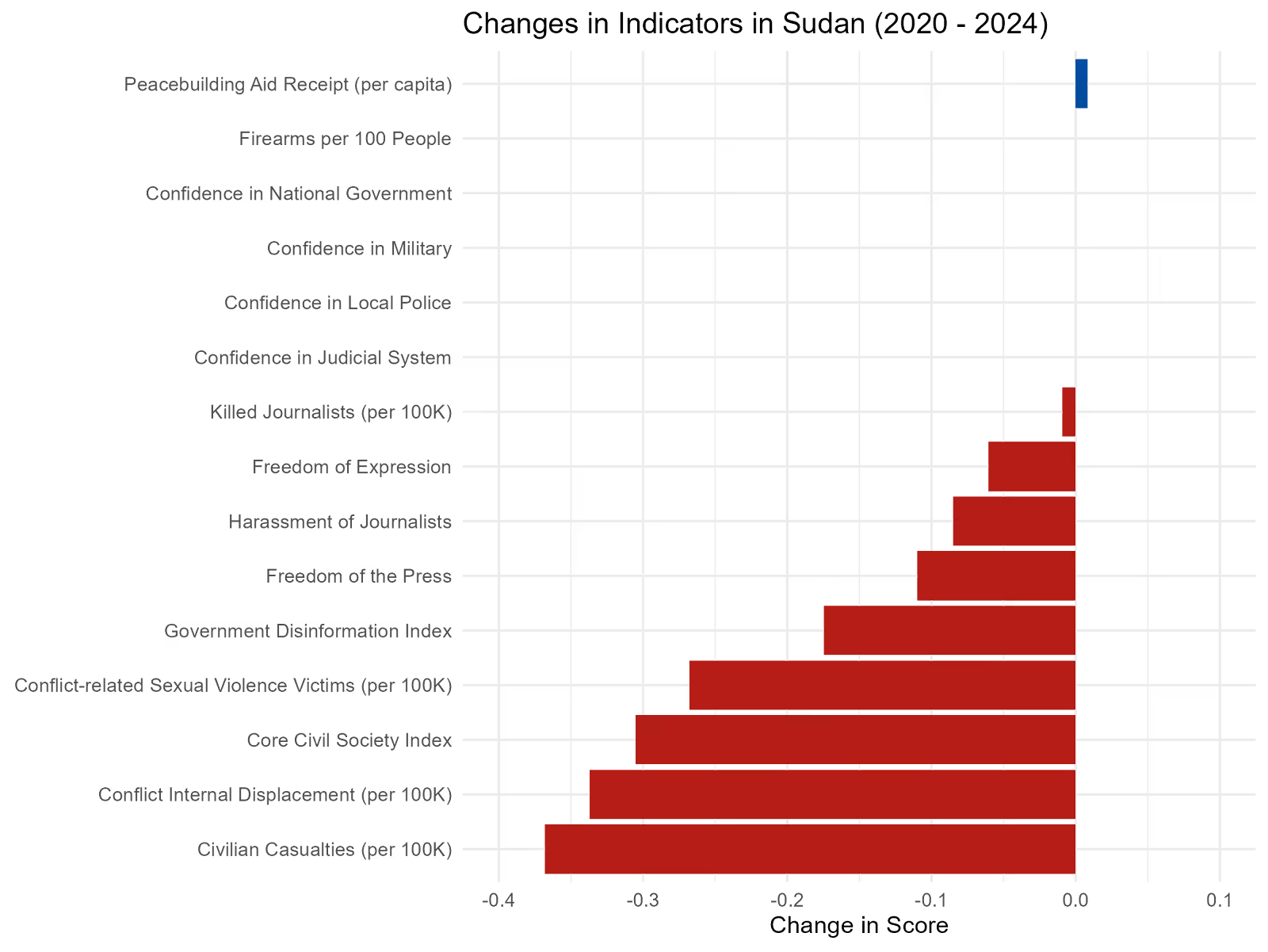 A lack of media coverage does not only reflect global interest but also stems from broader challenges facing the media sector. International outlets have consistently reduced foreign coverage in recent years, leading to a dearth of information from many global conflicts. At the same time, authoritarian regimes are increasingly cracking down on independent media, relying on both legal and bureaucratic harassment, as well as more direct forms of repression such as arbitrary arrests or physical attacks. In the Civilian Protection Index, all three indicators related to the media sector (measuring killed journalists, harassment of journalists, and overall press freedom) declined between 2023 and 2024, with freedom of the press deteriorating more than any other indicator (see also Figure 3 below and Protect: Journalists Under Fire). Similarly, Reporters without Borders in 2024 concluded for the first time that the global media environment had deteriorated to a “problematic” level. This was largely due to the increasing financial crisis facing the sector, coupled with a lack of political will to support independent media.5